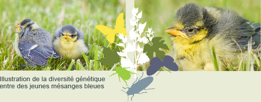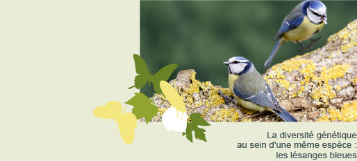 Illustration d’une communauté de passereaux : les mésanges bleues et les mésanges noires cohabitent, occupent l'espace et utilisent les ressources et l’espace en fonction de leurs besoins.